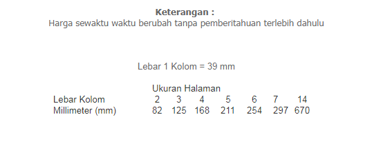 Anda dapat mengetahui harga iklan Radar Tasikmalaya dengan cepat dan mudah dengan melihat tarif dibawah ini atau menghubungi Customer Service Iklan kami.